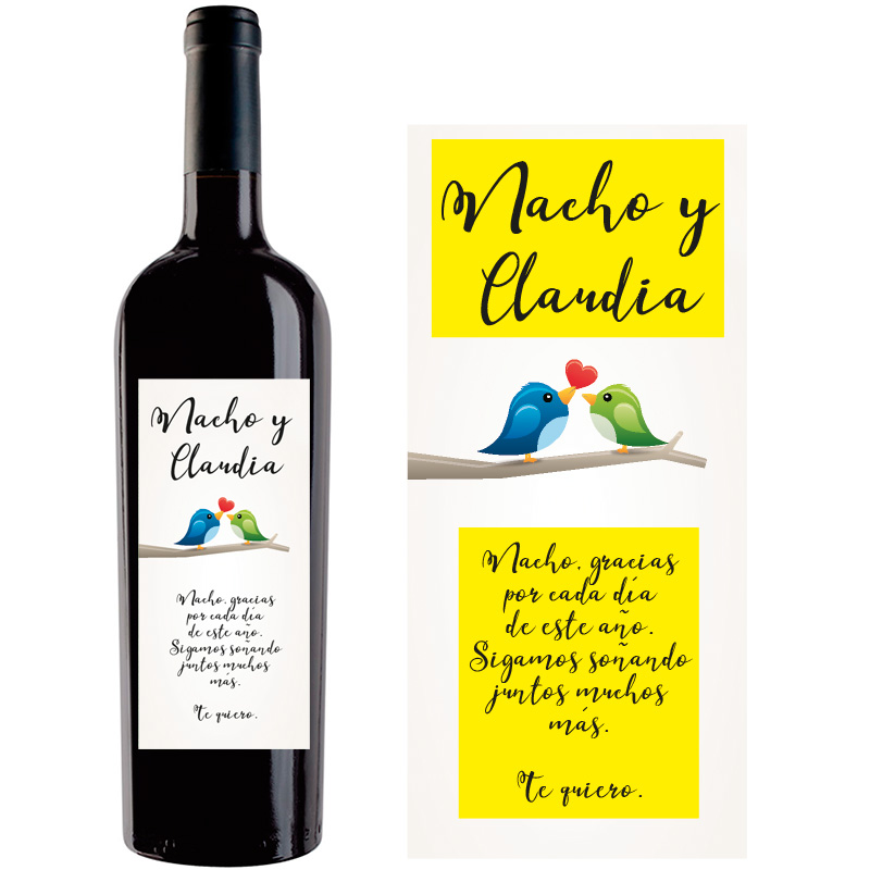Puedes sustituir todos los textos resaltados en color amarillo y elegir el vino que más te guste. Te recordamos que cuanto más cortos sean tus textos, más fácil será disponerlos equilibradamente en la etiqueta.